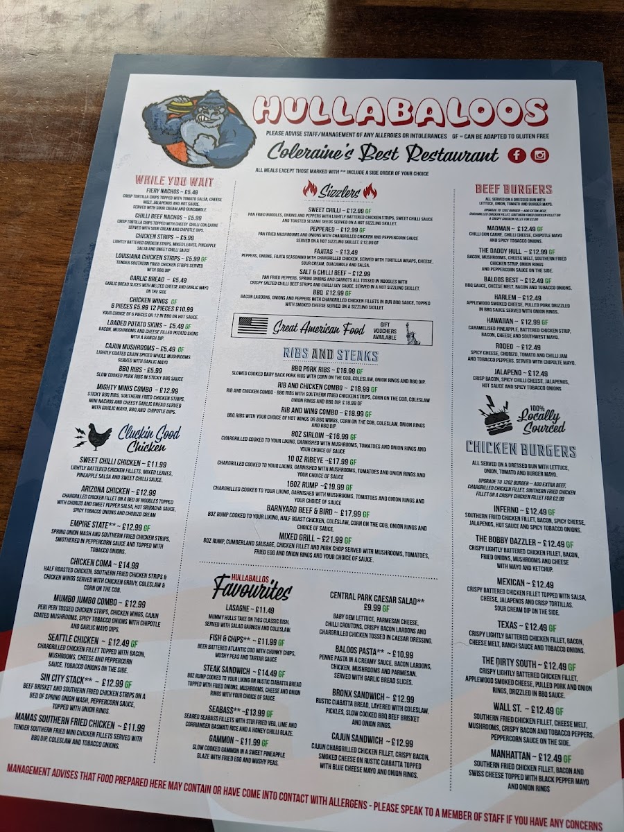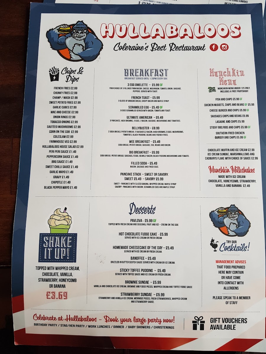 In conclusion, the Hullabaloos Restaurant Menu impresses with its diverse offerings, consistency, and warm hospitality. Ideal for families, casual meet-ups, or even a solo recharge meal, it’s a gem in Coleraine’s dining scene. If you’re in the area and looking for great food without pretension, Hullabaloos is well worth a visit.