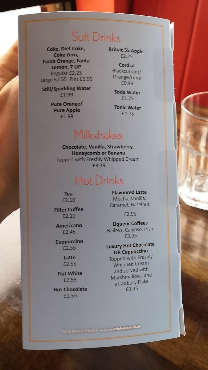 Lunch and dinner options lean into comfort food territory, with dishes like slow-cooked beef stew, fish and chips, and creamy chicken and mushroom pie served with buttery mash and seasonal vegetables. Portions are robust, and pricing is reasonable - a main averages between £10-£14, making it great value considering the quality and quantity.